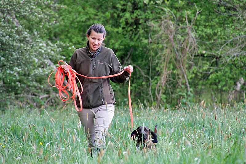 Als erstes ging es zum Training für die Leinenführigkeit und zum Standtreiben, danach zu den Schweißfährten.
