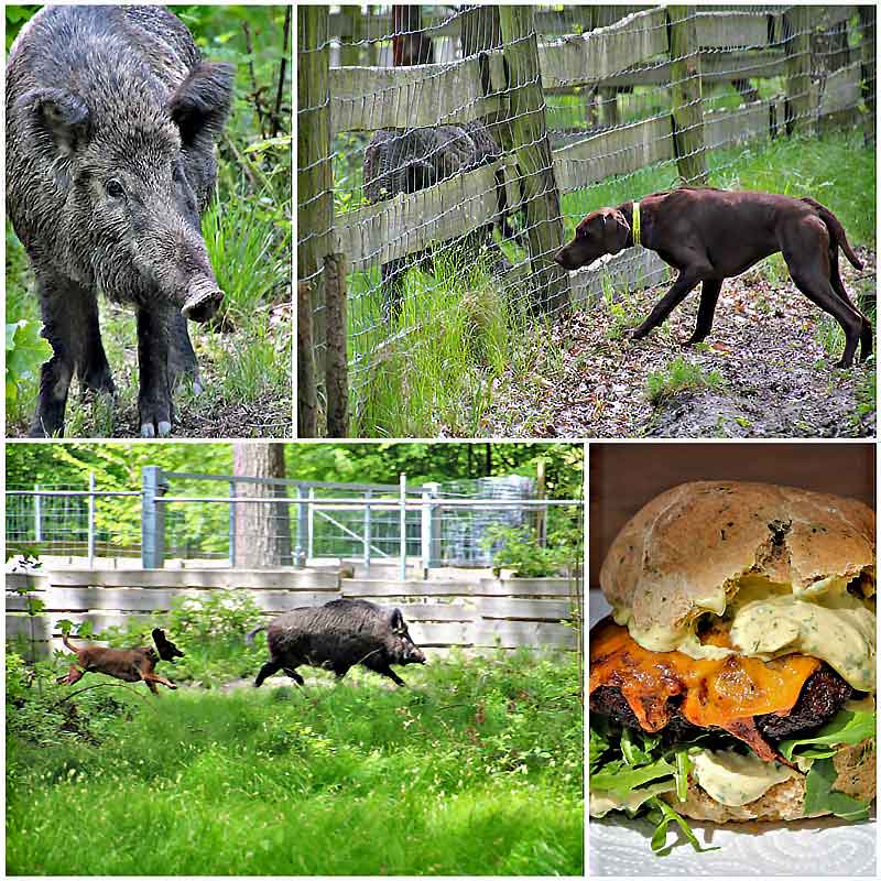 Die jungen Hunde konnten am Prägungsgatter das Schwarzwild kennen lernen und im Gatter selbst testen wie wehrhaft das Schwarzwild ist.
