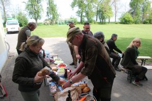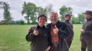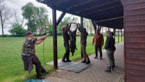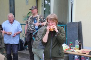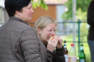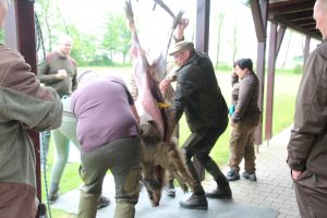 Jungjäger und Jungjägerinnen konnten beim Abschwarten und Zerwirken eines Stück Schwarzwildes helfen und Hand anlegen. Beim Vorbereiten der Masse für die Burgerpatties und dem Brät für die Bratwurst packten viele mit an. Der Fleischer gab Tipps und verriet seine Rezepte, so dass man es zu Hause nach machen kann. Im Anschluss wurde der Grill angefeuert und fleißig verkostet, wobei beim Burger essen der Mund nicht immer so weit aufging, wie der Burger groß war.